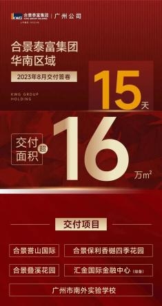 今年,合景泰富华南区域已实现竣备面积约46.2万㎡,交付面积约52.43万㎡,为超3500户业主交付新居。8月已交付面积约16万㎡,共4个项目,5批次交付,印证合景强大的交付力。