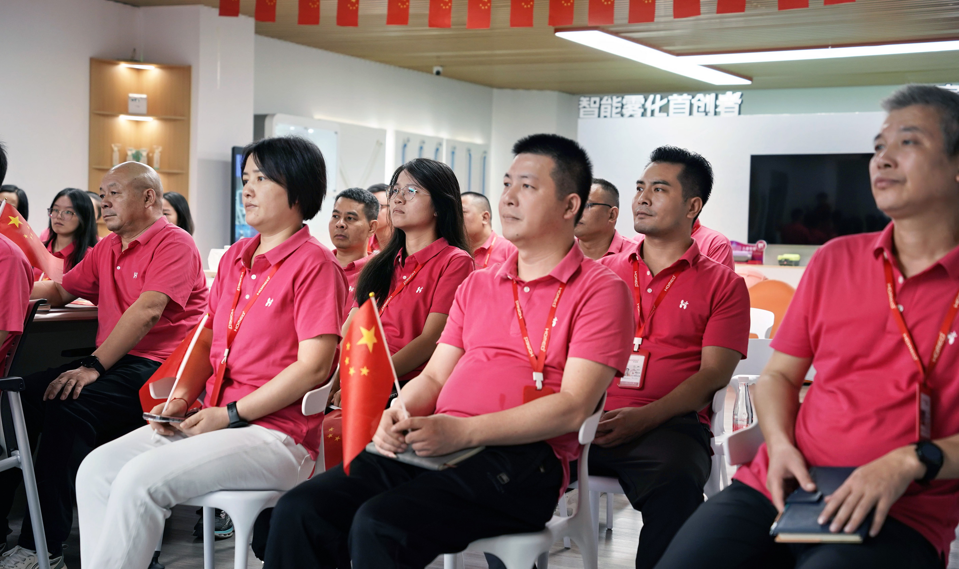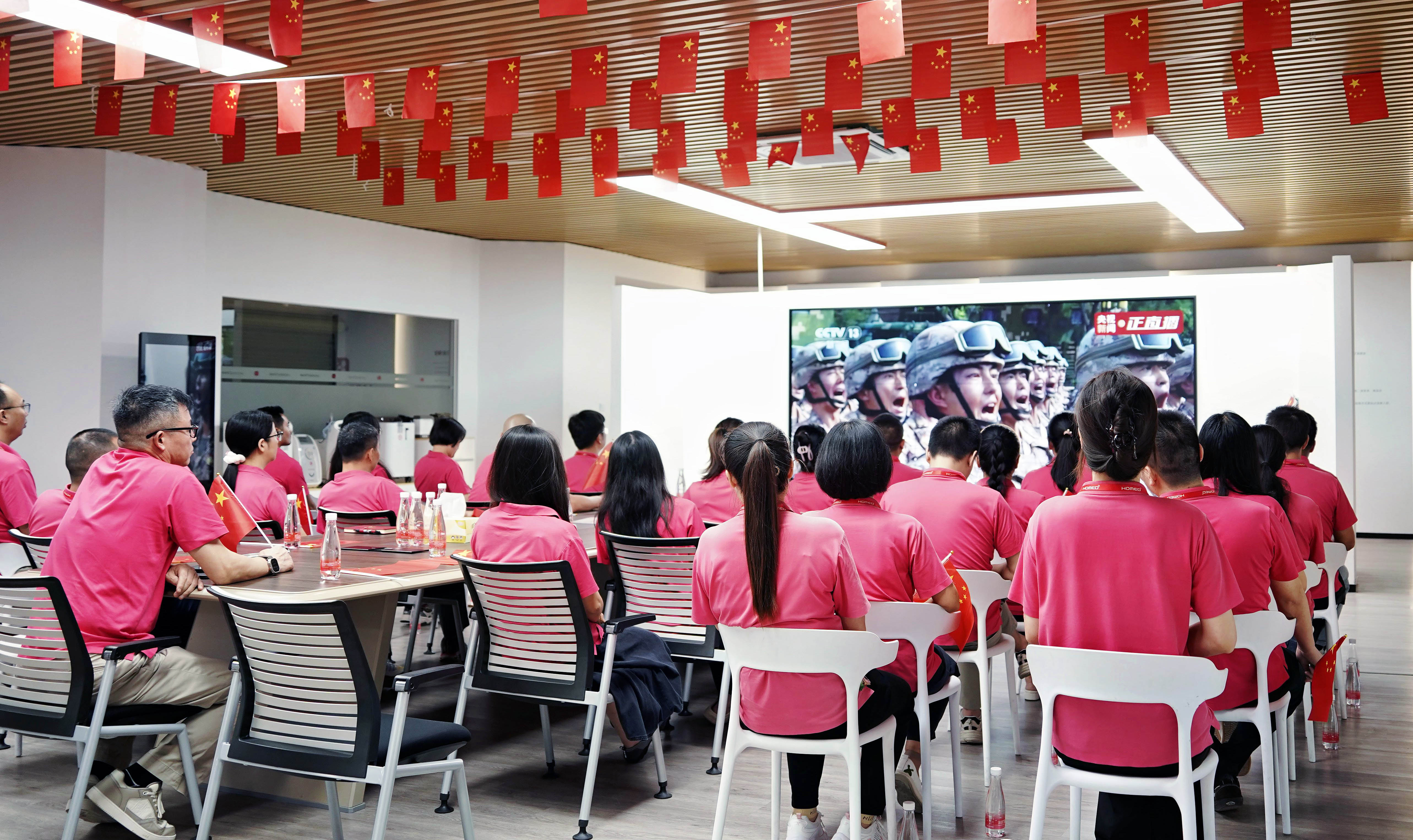 于震撼中感悟,于自豪中明责。 观看结束后,公司组织了爱国教育分享会。阅兵展现的不仅仅是国威军威,更是背后强大的科技研发实力、严谨的工匠精神和一丝不苟的质量追求——这与我们医疗器械行业所倡导的价值理念高度契合,一脉相承。